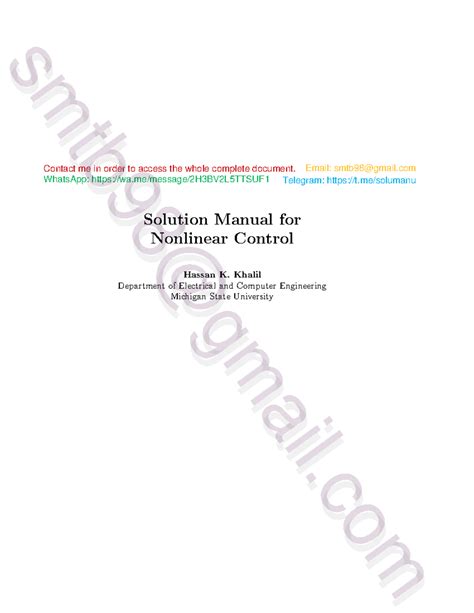 Read Nonlinear Control Khalil Solution Manual PDF