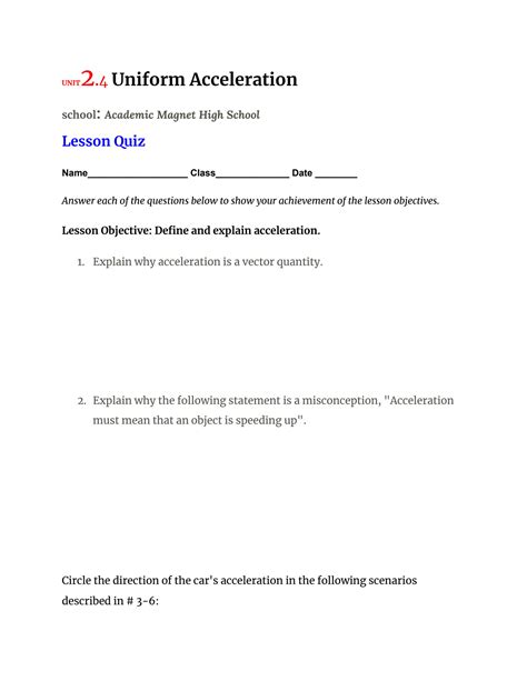 Read Online Unit 2 Uniform Acceleration 4 Answers Epub