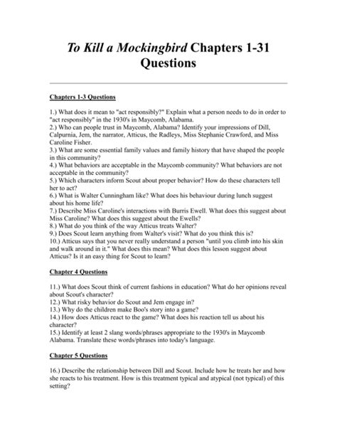 Read Online To Kill A Mockingbird Chapter 31 Questions And Answers Doc online is a convenient and frugal way to read To Kill A Mockingbird Chapter 31 Questions And Answers you love right from the comfort of your own home. Yes, there sites where you can get Doc "for free" but the ones listed below are clean from viruses and completely legal to use.