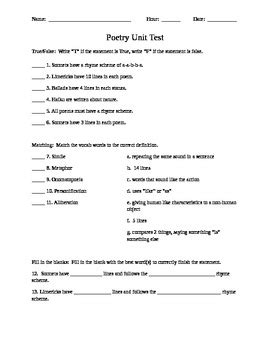 Read Poetry Unit Test With Answers Epub