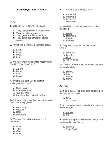 Read Science Quiz For Grade 3 With Answers Doc